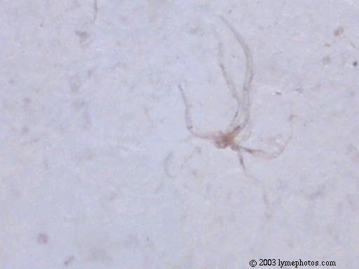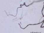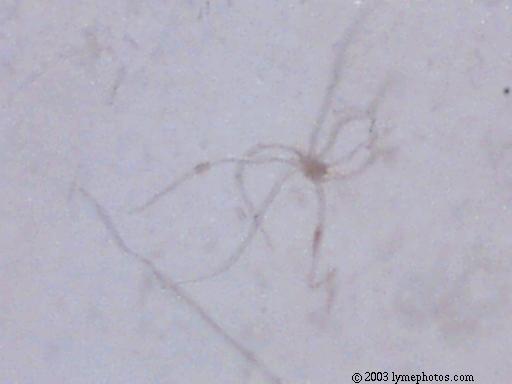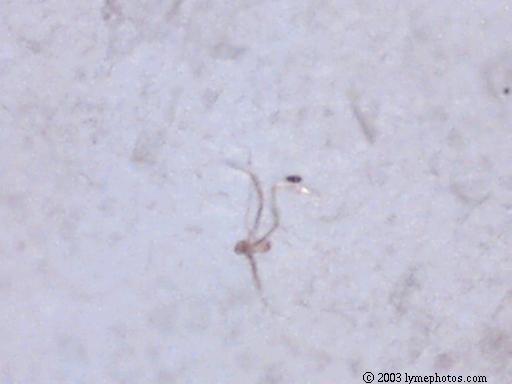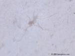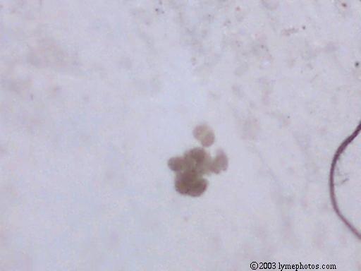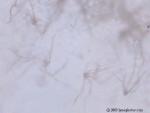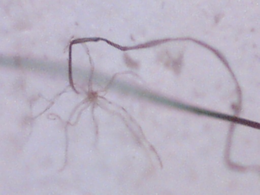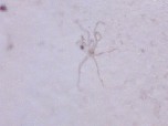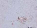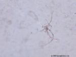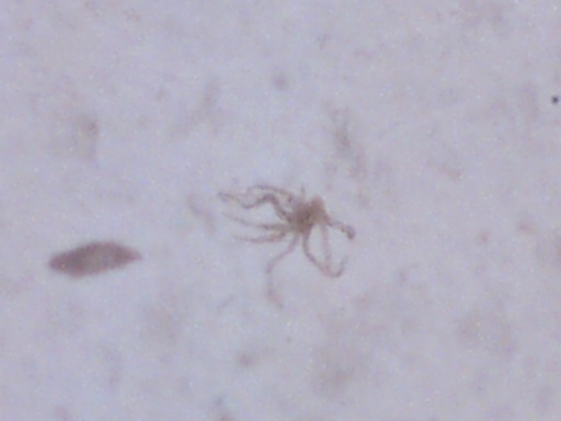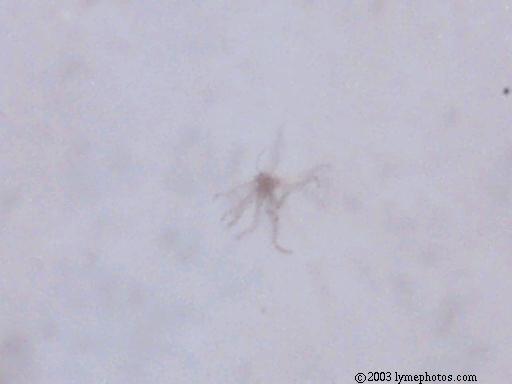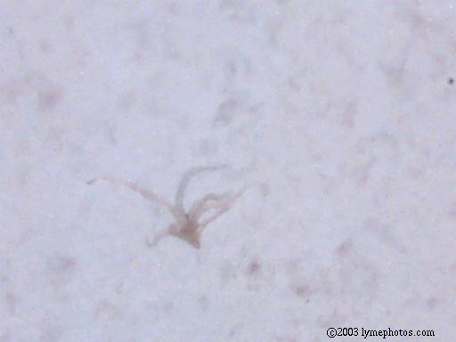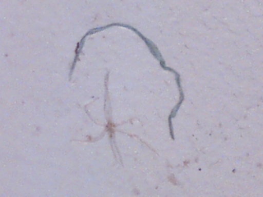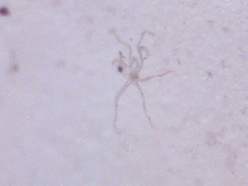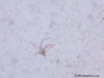 We believe the spores from the stressed cercaria eventually burst into star-shaped larva. After acquiring nourishment from the center amniotic sac, the star-shaped larva starts to break apart and separate juvenile worms continue on their life cycle. Actually we have considered the possibility of 6 different life cycles, dependent upon conditions.